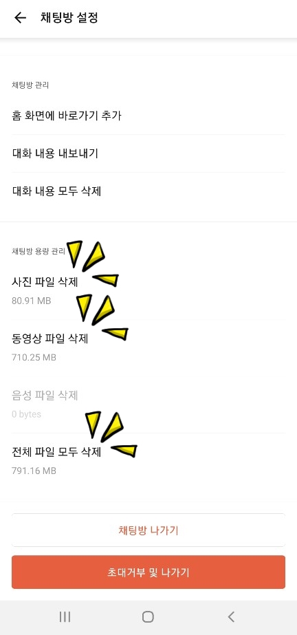 대화내용은 지워지지 않으니 걱정 마시고, 혹시 중요한 사진이나 동영상, 음성 파일 등이 있다면 미리 핸드폰에 다운받아 놓으시고 지워주면 되겠죠?