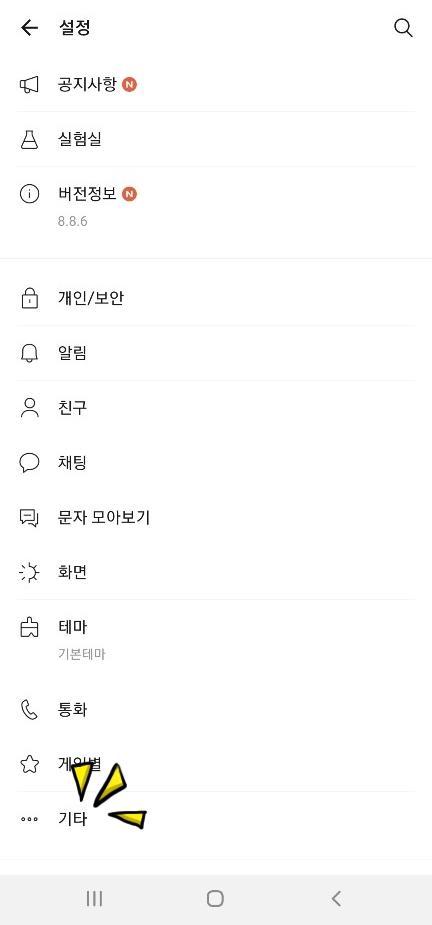 그럼 설정 화면이 나오는데 여기서 아래쪽에 기타를 눌러줍니다.